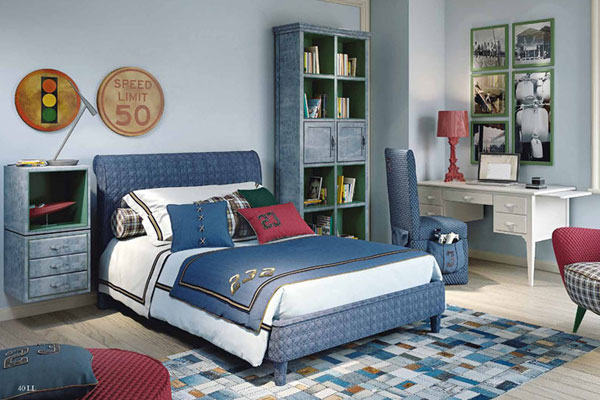 对于10-14岁的青少年,以下这三款来自意大利进口儿童家具HALLEY的深蓝色的儿童房搭配不妨参考参考。