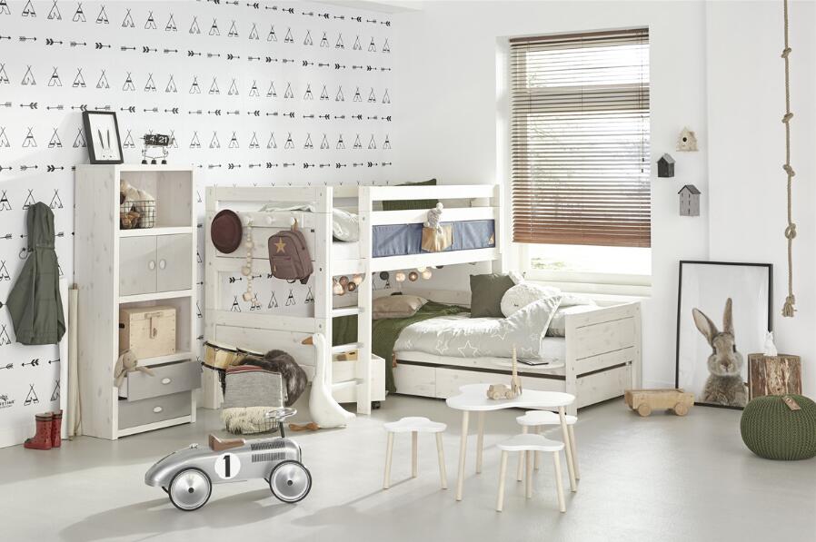 阁楼双层床除了节约空间外,理显著的优点是趣味性、娱乐性。想想每天自己一觉醒来就睡在童话中的迷你阁楼,会让孩子们多么激动,即使这样的阁楼可能成年后就不适用,但是谁的童年不想要这样任性一回呢?可以考虑把双层床打造成阁楼式的,二楼将会让孩子们抢着去睡。如果只有一个孩子,也可以考虑下面做成储物区、学习区甚至游戏玩耍区也是非常棒的设计。不仅空间利用起来,而且实用性也高。
