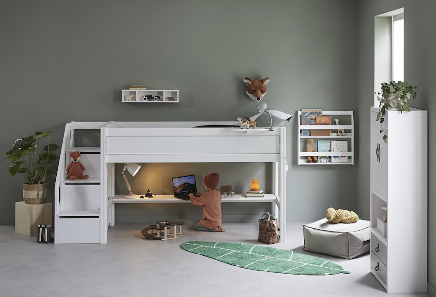 储物最好按照功能区分类设计,区分学习和娱乐物料。屋子不仅整洁有序,孩子也学会收纳啦!如果还没有收纳需求,可以先留白后续方便设置。