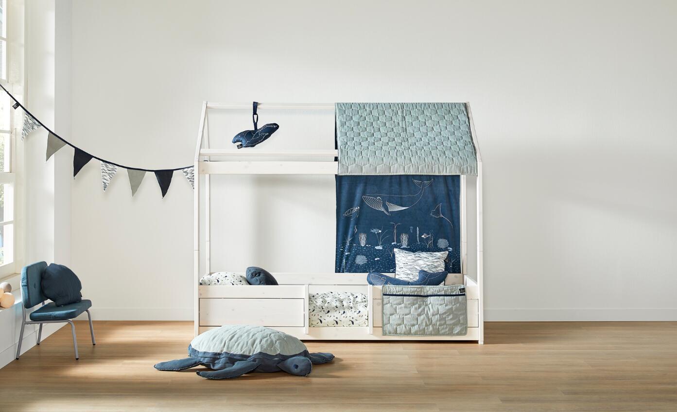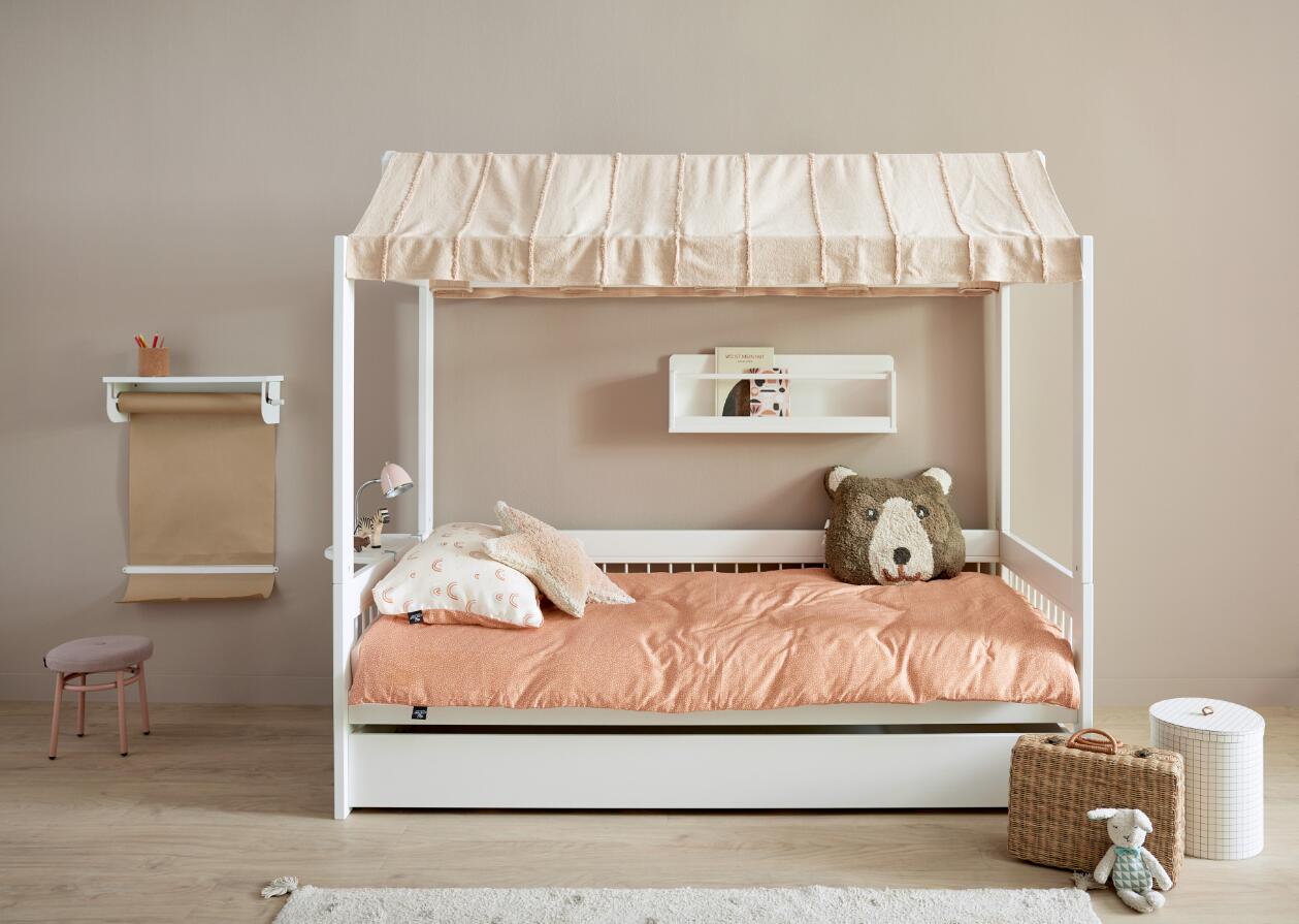 它的功能性,更懂孩子成长的 “变化”。一张 lifetime 儿童床,能从婴幼儿时期的低床,变身为学龄儿童的高架床,再切换成青少年适用的基础床,甚至根据多孩家庭需求组合成子母床 ——0 岁时,它是方便家长照料的小床;6 岁时,高架床下方可搭配德国 moll 书桌,改造成专属学习角,让孩子在同一空间完成 “玩耍 - 学习” 的无缝切换;有了弟弟妹妹,又能变身子母床,承载双倍的童年欢笑。更妙的是梦幻帐幔设计:拉开时,这里是开放的游戏场,孩子可邀伙伴玩 “森林探险”;合上时,就成了专属秘密基地,他们能抱着玩偶小声分享心事,这份 “可控的私密感”,恰好契合儿童成长中的心理需求。