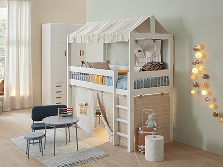 进口儿童家具的质感,藏在贴合儿童生活习惯的细节里。Lifetime护栏床的屋顶帐篷采用魔术贴与卡扣组合固定,安装与拆卸无需复杂工具,家长可轻松操作,孩子也能参与搭配,培养动手能力。不同色系的帐篷可随心更换,适配节日氛围、季节变化或孩子的喜好,让儿童房常换常新,保持新鲜感。床下抽屉采用分区设计,可根据物品大小分类收纳,绘本、玩具、衣物各归其位,方便孩子查找取用。床体高度经过人体工学考量,适配儿童身高,让孩子能自主上下床,逐步培养独立生活能力。这些人性化细节,让每一次使用都充满便捷与安心,真正做到以孩子为中心。