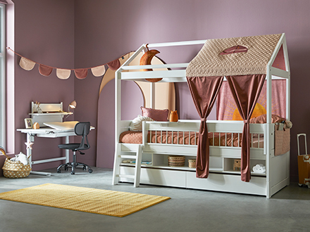 进口儿童家具的精髓,在于对儿童生活习惯的深度洞察。Lifetime半高湖边小屋以孩子的视角雕琢细节,让实用与贴心并存。半封闭式的小屋造型,为孩子打造专属“秘密基地”,满足孩童对私密空间的向往,在这里他们可以尽情释放天性、安放情绪。床体高度经过科学测算,兼顾孩子自主上下床的便利性与防掉落的安全性,培养独立生活能力。无论是架高状态下的护栏设计,还是拆除模块后的床沿弧度,都贴合孩子的行为习惯,无需成人过多干预,让孩子在使用中感受被理解与尊重,让儿童房成为充满温度的成长港湾。