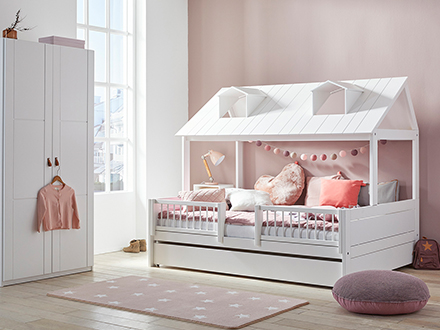 在小户型儿童房的布局中,空间利用率是核心诉求。Lifetime半高湖边小屋以巧思设计破解空间难题,堪称小户型的“空间魔法师”。未架高时,紧凑的半高造型不占用过多面积,预留出充足活动空间,让孩子能自由奔跑嬉戏;架高后的高架款式,床下空间可灵活拓展为储物区、阅读角或游戏区,将闲置空间充分盘活,收纳玩具、绘本等杂物,让儿童房整洁有序。可拆卸的模块化设计,更便于根据空间布局灵活调整,无论是狭长型还是方正型儿童房,都能完美适配,无需大幅改动格局,便实现空间利用率的最大化,展现进口儿童家具在空间设计上的极致巧思。