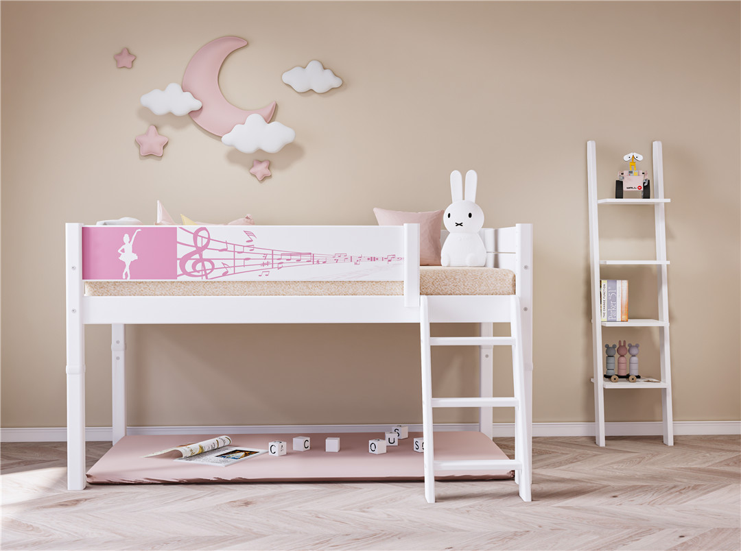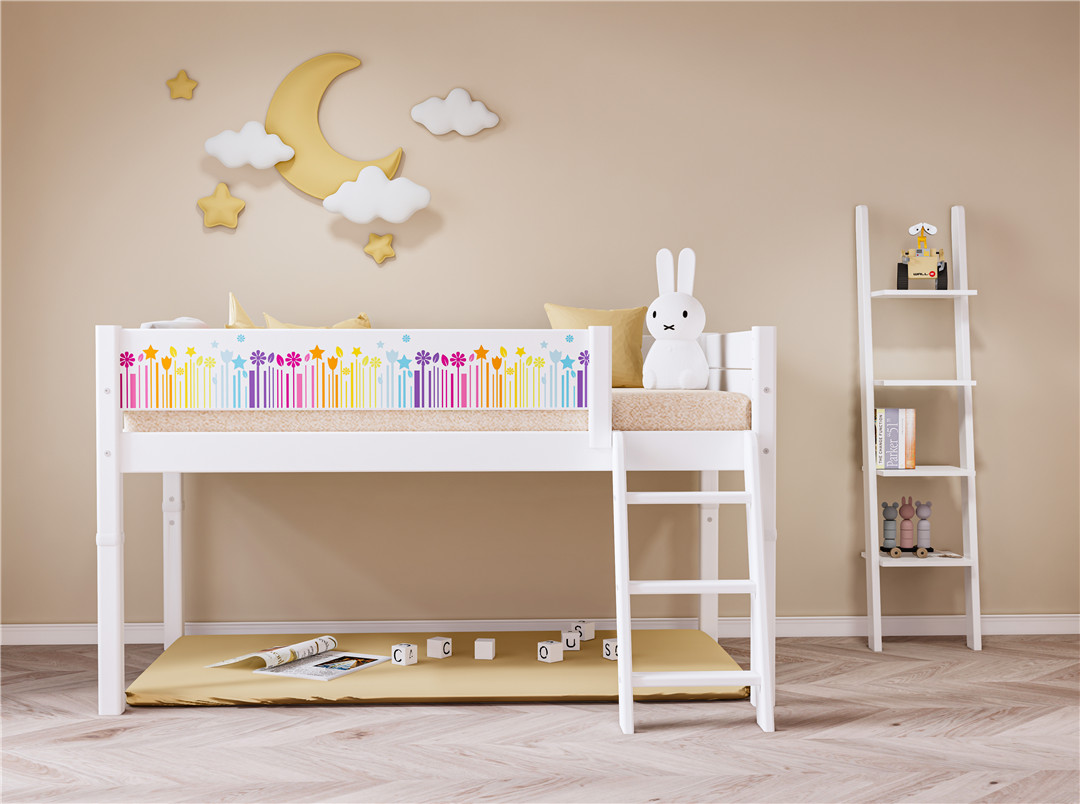 最让孩子心动的,莫过于那道灵动的斜梯,它不像直梯那般单调,像一道通往童话世界的小阶梯,每一步都藏着趣味与惊喜。清晨醒来,孩子踩着斜梯慢慢向上,仿佛攀登着通往云朵的小径,上铺便是属于他的“秘密基地”;傍晚时分,顺着斜梯缓缓走下,扑进父母的怀抱,分享一天的欢喜与小烦恼。更贴心的是,它的高度恰到好处,不高不低,既满足了孩子探索高处的好奇心,又让上下床变得轻松自在,哪怕是年幼的宝宝,也能自己稳稳地上下,不用父母时刻搀扶,悄悄培养着孩子的独立性。