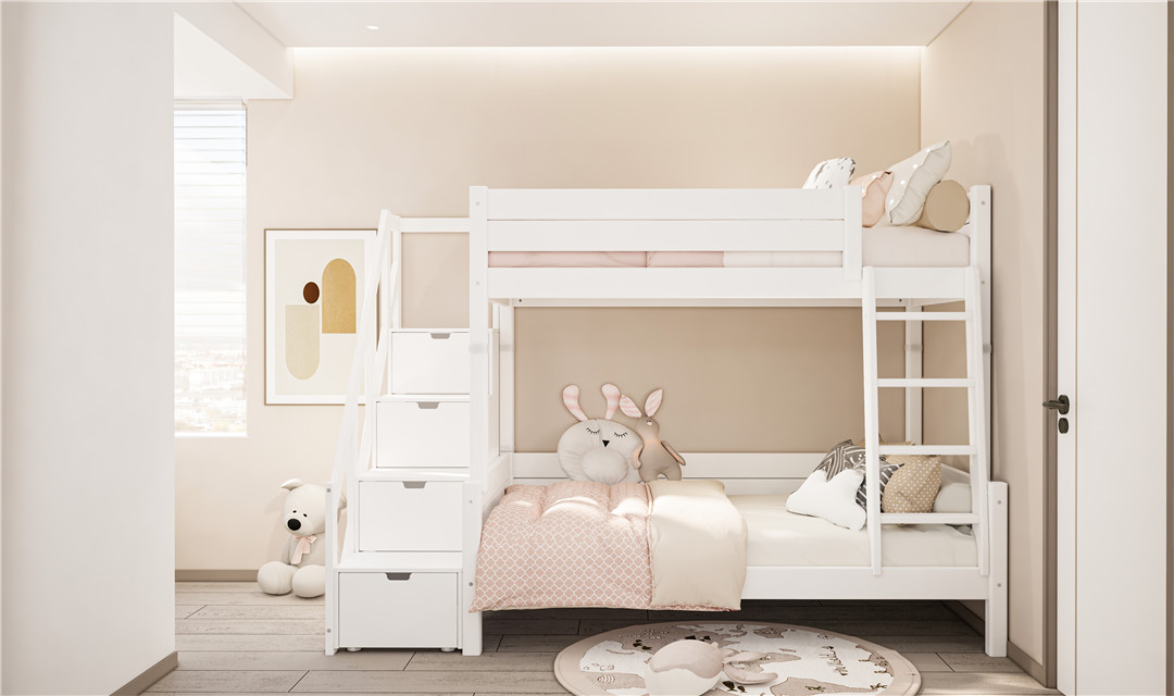 父母的守护,从来都藏在细节里,这款儿童家具,把安全与安心刻进了每一处设计。上窄下宽的造型,就像扎根大地的小大树,稳稳当当立在儿童房里,任凭孩子们在上面蹦蹦跳跳,也不会有丝毫晃动,耐用又安心。三面式加高护栏,像一道温柔的屏障,全方位包裹着上层的小床,杜绝孩子翻身跌落的隐患,让孩子睡得安稳,也让父母少一份牵挂。那些细腻的边角处理,没有一丝尖锐,就像被时光磨平了棱角,温柔地守护着孩子的每一次磕碰,把爱藏在看不见的细节里。