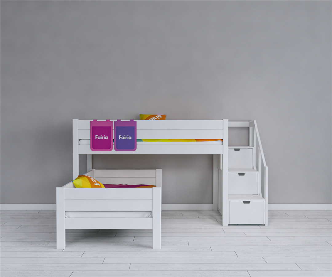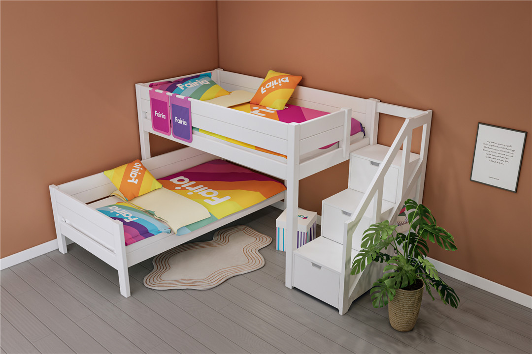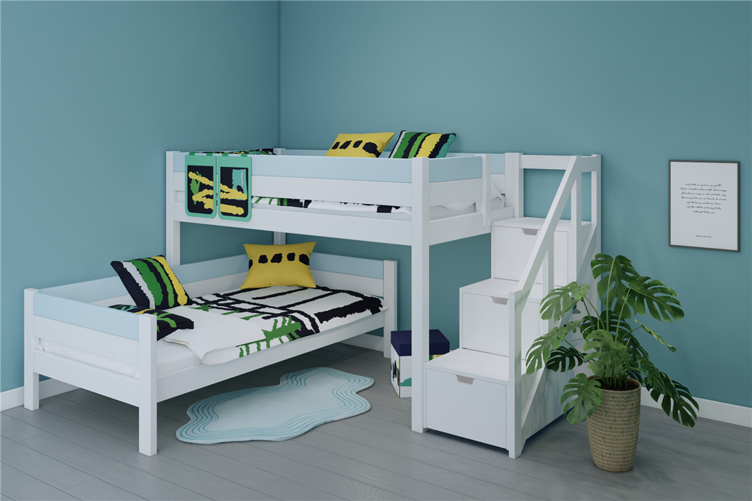你看,上床是孩子安睡的小天地,软乎乎的床榻,能接住孩子所有的疲惫,夜里伴着星光入梦,梦里都是甜甜的童话;下床或是一旁的错位空间,悄悄“变”出一个大大的衣柜,那些小裙子、小外套、小袜子,还有孩子珍藏的小玩具、绘本,都能被妥帖收纳,再也不用乱糟糟地堆在床头、角落。这份错位设计,不仅省出了大大的活动空间,更让储物空间倍增,让孩子的小世界,始终整整齐齐、清清爽爽。